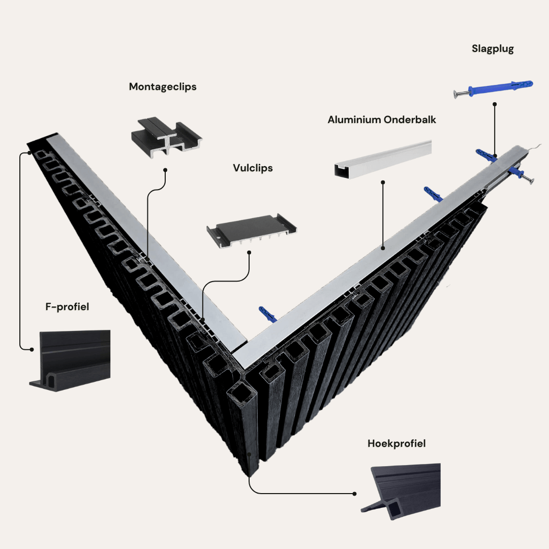 Een compleet pakket van ons Premium Rabatdeel Rhombus Zwart. Dit model is een echte blikvanger aan jouw woning, schuur, uitbouw of tuinhuis. Deze prachtige donkere rabatdelen worden aangeboden in pakketten van 10 m² of 15 m² met alle standaard benodigde onderdelen voor de montage hiervan.